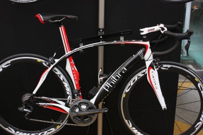 この写真のカラーリングは2010年のモデルですが、カーボンとケブラーを使用したフレームです。