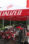 お昼前に横浜出て寄り道しながら4時前につきました。 既に明日からの準備が整って試乗車ずらり!総額ウン千万円ですねw。 明日から2日間こんなバイクたちに乗ります。 SW ターマックSL4 SW Venge もちろんこの他にMTBもしっかりありますよ、写真はまた後ほど。